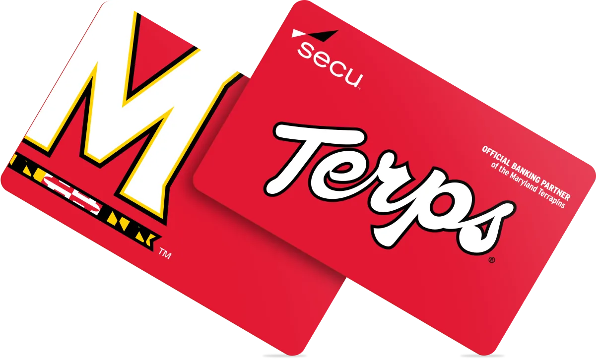Combine the convenient benefits of a SECU Total Checking & Rewards Account with the exclusive perks of the Official Debit Card of the Maryland Terrapins for unbeatable results.